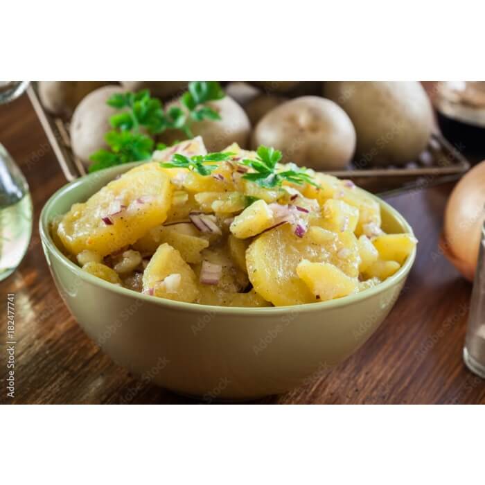 - Aderece las patatas con la mezcla de vinagre, cúbralas bien y refrigérelas durante al menos 20 minutos para permitir que los sabores se combinen.