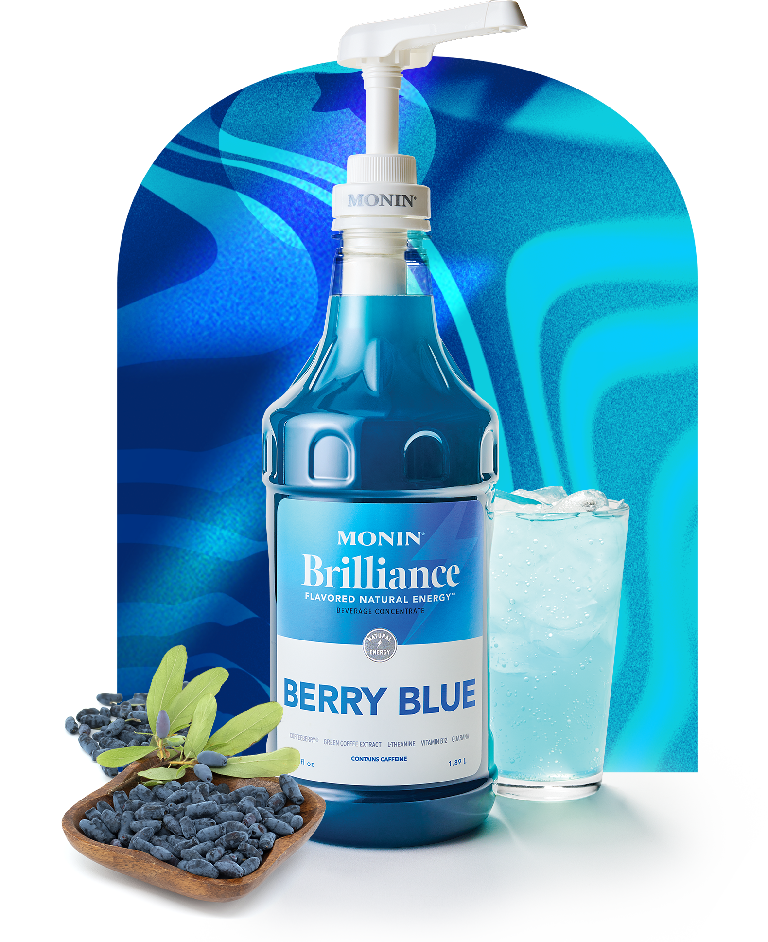Azúcar de caña pura, agua, ácido cítrico, citrato de sodio, sabores naturales, espirulina (colorante), extracto de fruta de café integral CoffeeBerry, L-teanina, cafeína natural, extracto de guaraná, goma xantana, sabor natural a miel, metilcobalamina (vitamina B12).
