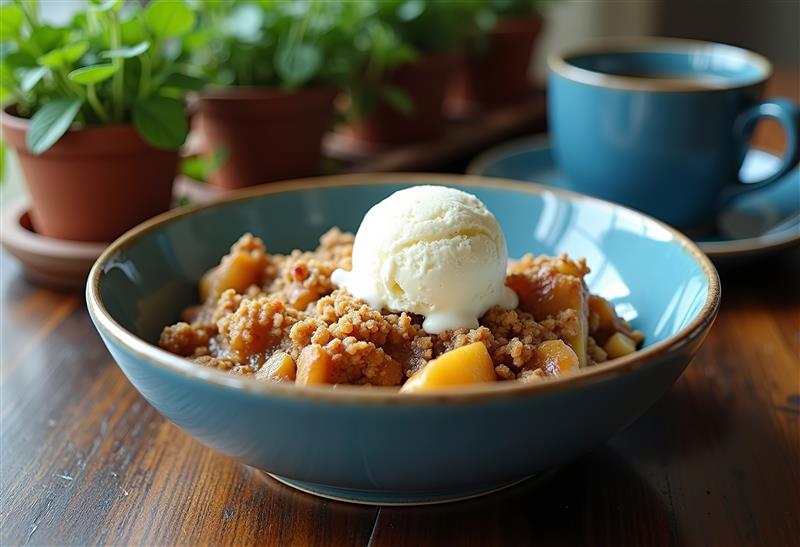 - Decorar con helado de azúcar morena con especias sureñas y un chorrito de salsa de caramelo.